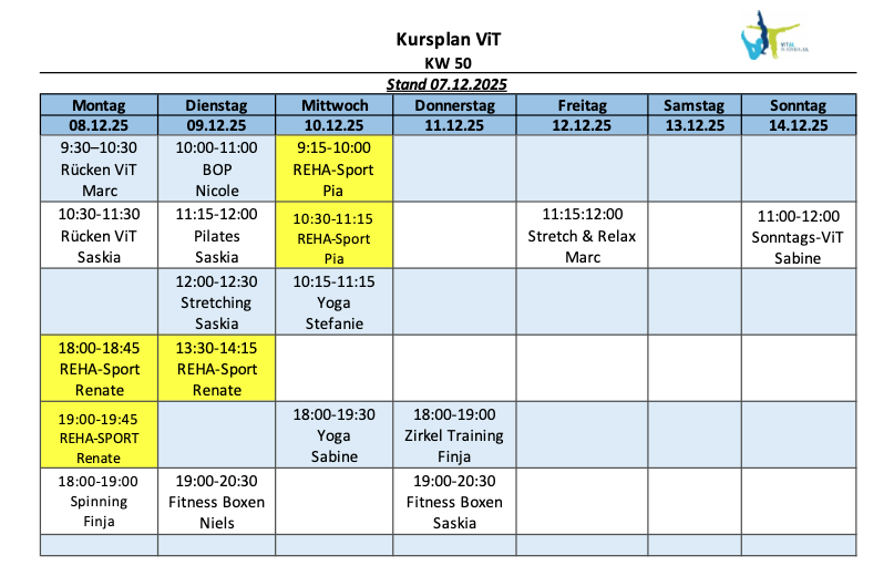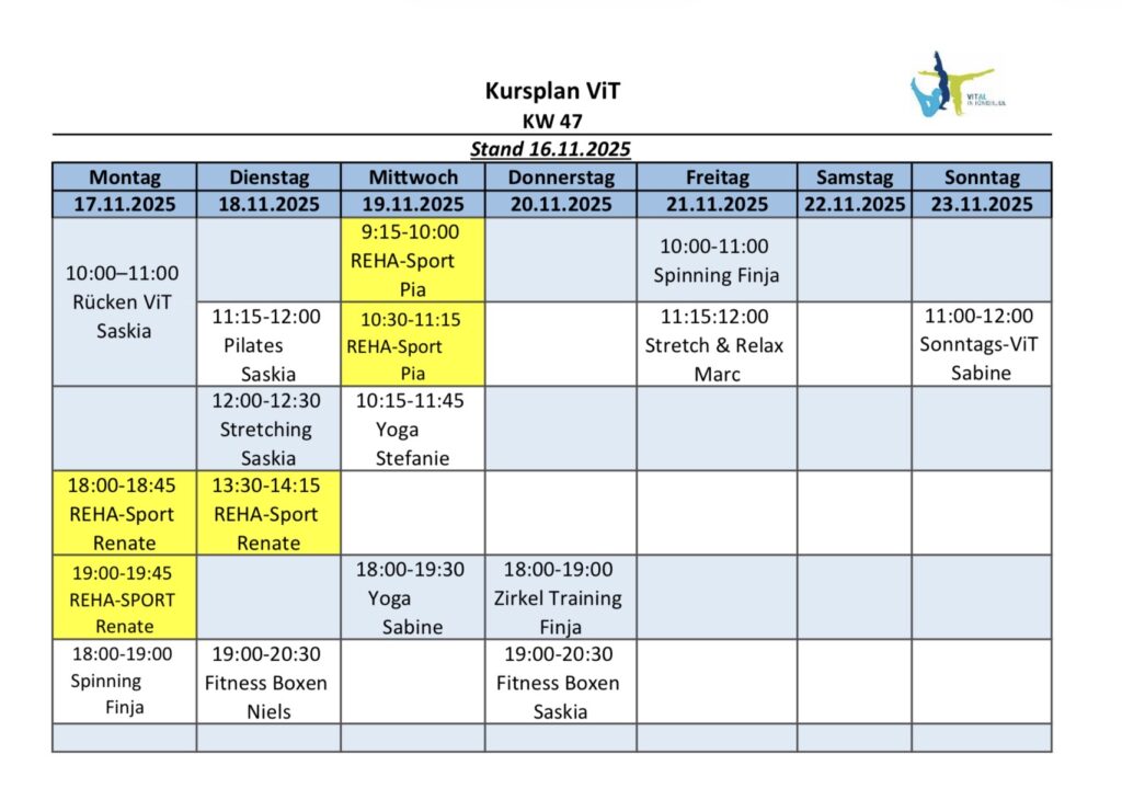 Kursplan für die KW 47